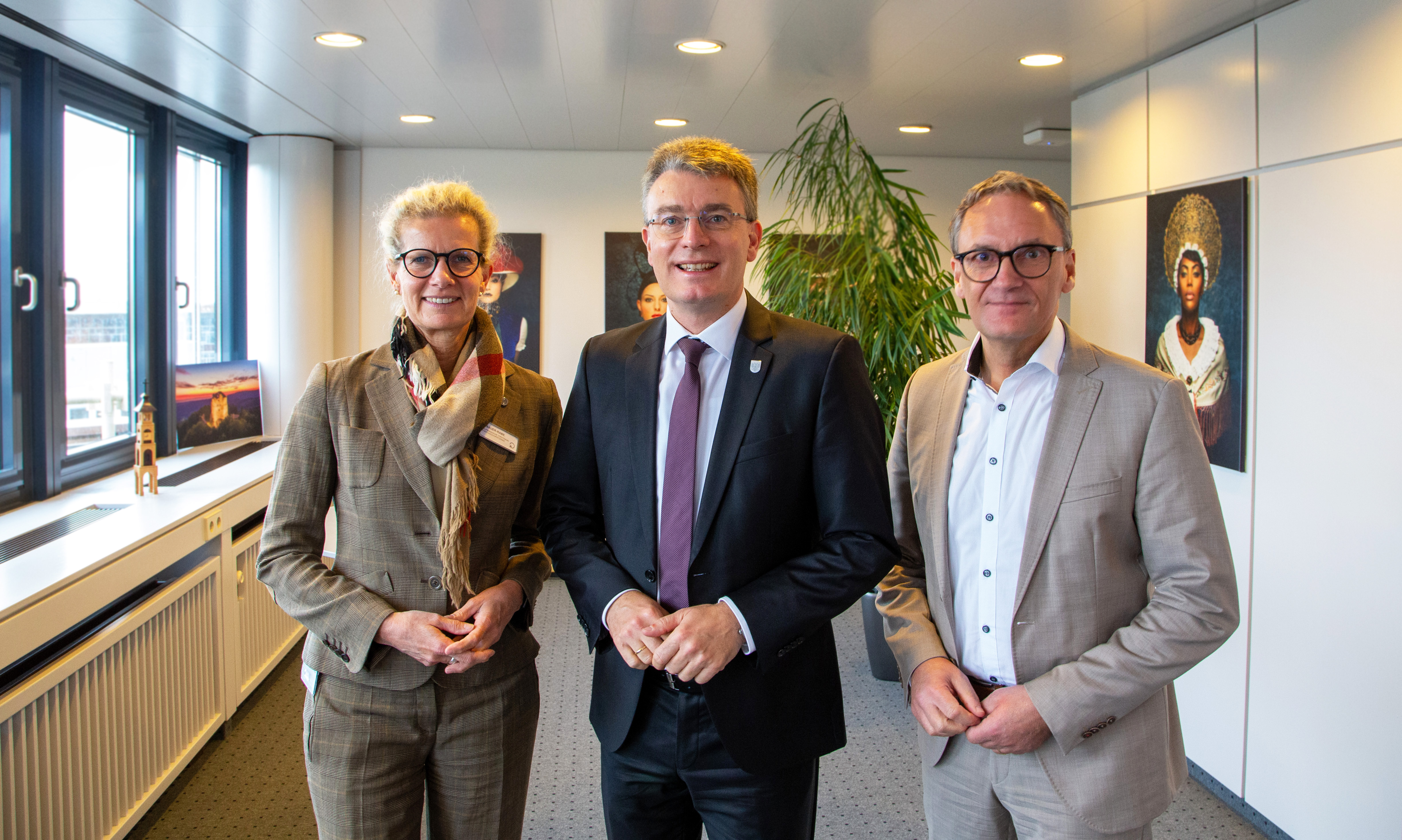 Um sich über die laufenden Planungen für den Neubau des Ortenau Klinikums Lahr eng abzustimmen und zu informieren, sind Landrat Thorsten Erny, die Vorstandsvorsitzende des Ortenau Klinikums, Claudia Bauer-Rabe und Markus Ibert, Oberbürgermeister der Stadt Lahr, kürzlich im Landratsamt Ortenaukreis in Offenburg zusammengekommen. Bilanz des Treffens: Die Planungen für das Großprojekt gehen weiterhin zügig voran und liegen voll im Zeitplan.